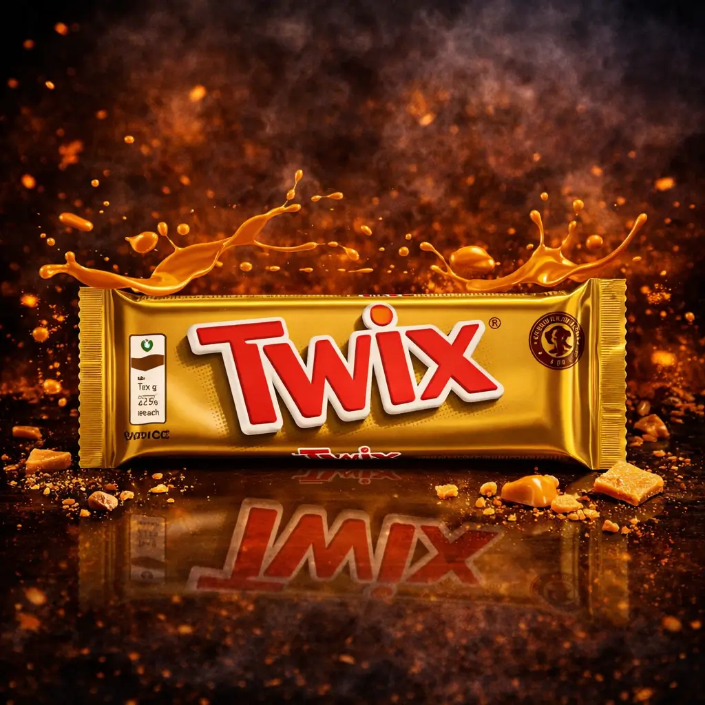 Le Twix est une barre chocolatée composée d’un biscuit croustillant, d’une couche de caramel fondant et d’un enrobage de chocolat au lait.